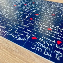 Idéal pour partager un bon repas, ce set de table fabriqué en Espagne représente la partie gauche du mur des je t'aime.